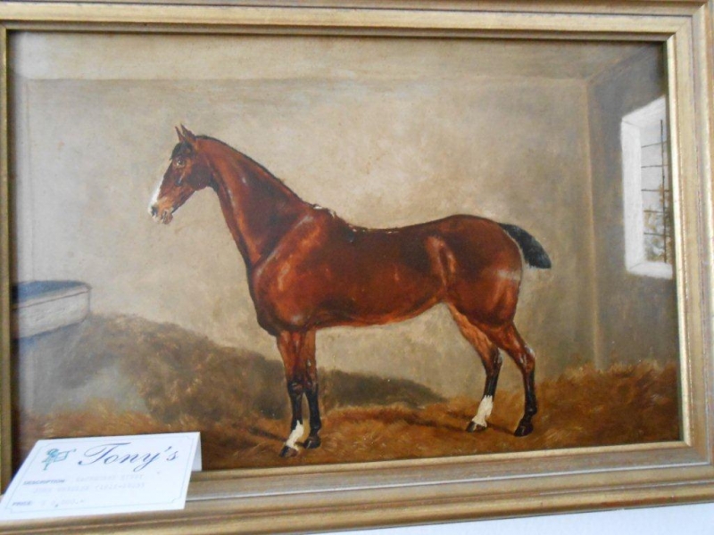 Oil painting study of racehorse in stable by John Wheeler 45x29 cm
