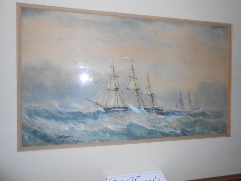 Marine watercolour by A.W.Fowles 1877 29x32cm